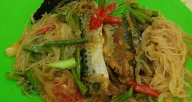 Sarden bihun, dimasak dengan bumbu dan bawang bombai, dimakan bersama nasi hangat membuat makan siang anda terasa nikmat.